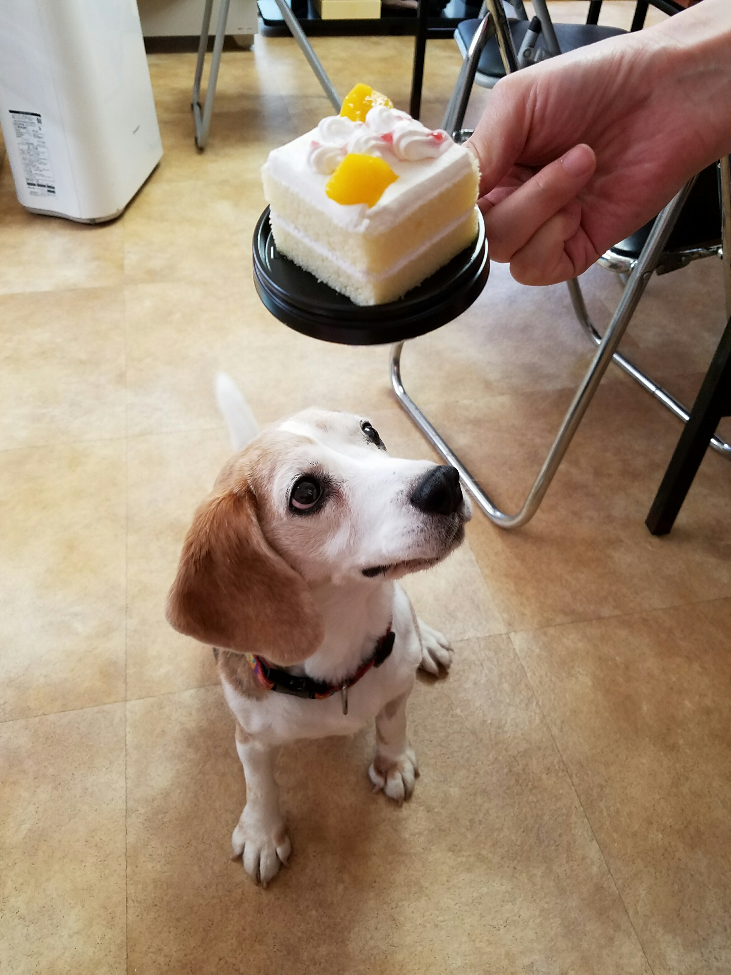 モリくんにもささやかながらわんちゃん用のケーキをプレゼントしました。(この後3秒で完食!!)