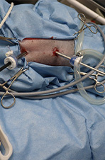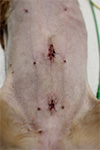 近年、血管を処理した縫合糸が原因と思われる肉芽腫(異物に対する炎症反応)が報告されてきています。当院では、肉芽腫の原因となる可能性のより少ない縫合糸を選択して手術を行っております。